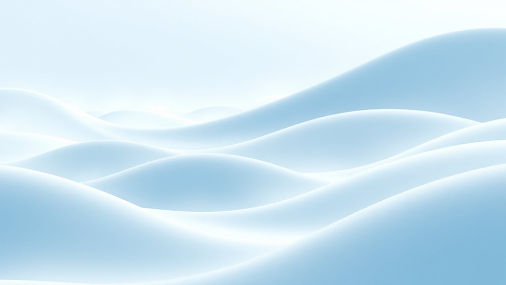 Fresh pale blue tones create a calming atmosphere that inspires futuristic serenity. These colors evoke tranquility, reduce stress, and promote mental clarity, making them ideal for relaxation spaces or sleek digital designs. They pair well with neutral shades for a modern look and help foster trust and openness in branding. Incorporating these shades can energize your environment and boost focus. If you’re curious about harnessing the power of calming blue, you’ll discover more inspiration ahead.