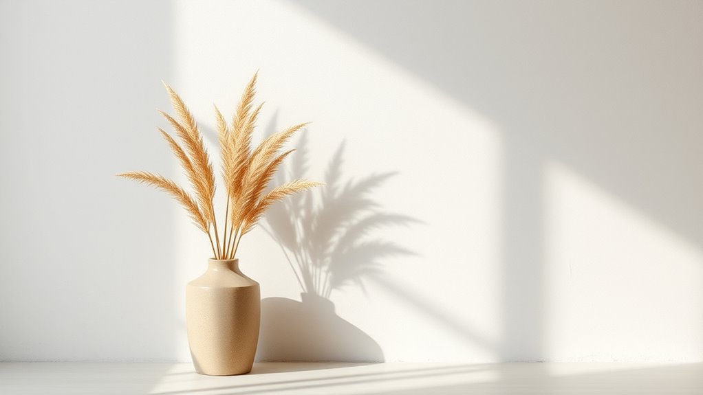 You can pair mineral off-whites with complementary accent colors like soft blues, muted greens, or warm terracotta to create a balanced look. Coordinating furniture finishes, such as natural wood or matte metals, enhance their calming vibe. These combinations make your space feel harmonious and inviting, allowing the neutral tone to serve as a versatile backdrop that highlights your chosen accent colors and furniture styles effortlessly.