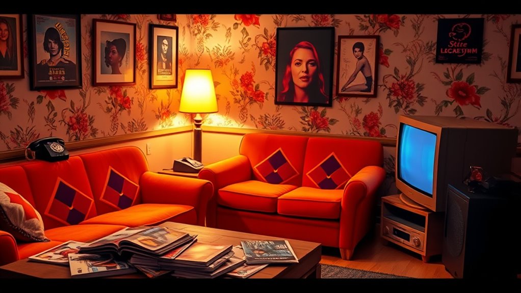 Vintage and nostalgic decor inspired by the 1970s and 90s helps you create warm, personalized spaces full of character. Think bold patterns, earthy tones, woven textiles, and funky accessories from the 70s, mixed with vibrant colors and geometric shapes from the 90s. By blending these eras, you craft a stylish, authentic vibe that tells your unique story. Keep exploring to discover how to perfectly incorporate these nostalgic elements into your home.