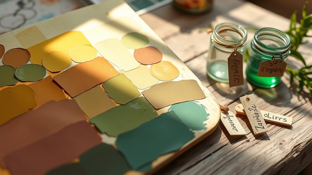 Beyond VOC reduction, natural pigment sources play a significant role in eco-friendly painting. Instead of synthetic dyes, these paints use pigments derived from natural materials like minerals, plant extracts, and other renewable resources. For example, pigments from clay, charcoal, or crushed minerals can produce vibrant, lasting colors without relying on synthetic chemicals. Using natural pigment sources not only minimizes chemical exposure but also supports sustainable practices, as these materials are often locally sourced and biodegradable. When you opt for paints with natural pigments, you’re embracing a more eco-conscious approach that aligns with your values of sustainability and health. Additionally, choosing paints made from water-based formulations can further reduce VOC emissions and improve indoor air quality.