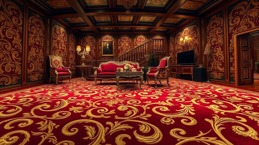 Imagine tending to a masterpiece; maintaining your luxurious carpet is similar. Regular vacuuming with slow, deliberate strokes lifts dirt and preserves texture. For stain removal, act quickly—blot the spill gently and use a gentle cleaner suited for delicate fibers. Avoid harsh chemicals, and deep clean periodically with professional steam cleaning. This routine keeps your wall-to-wall carpets looking fresh, plush, and as stunning as a gallery-ready artwork.