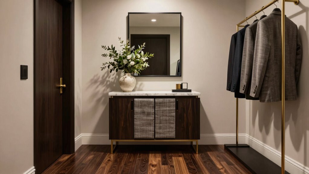 Ever wonder how to create a welcoming and functional entryway? The key lies in blending simplicity with style, and that starts with your choice of colors and lighting. Using custom color palettes can instantly elevate the look of your space. Instead of sticking to the usual neutrals, consider selecting a tailored mix of hues that reflect your personality. Deep, rich tones or sophisticated muted shades can make your entryway feel more expensive and curated. Pair these colors with sleek accents and keep the palette cohesive to avoid overwhelming the space. The goal is to create a visual flow that draws visitors in and sets the tone for the rest of your home.