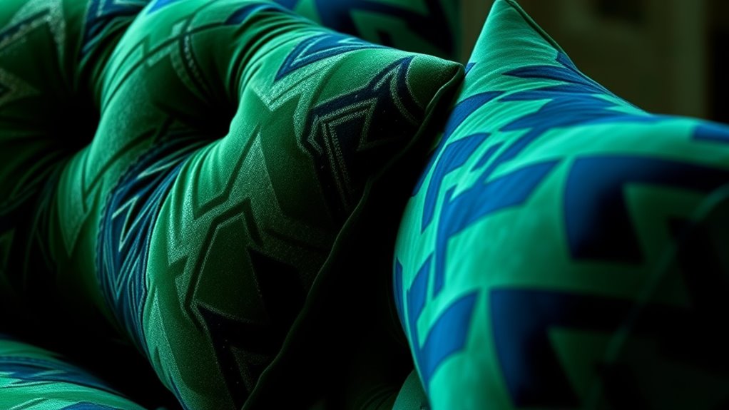 Embracing bold patterns, velvets, and textured fabrics can truly transform your space. Imagine a small apartment where a velvet emerald sofa paired with geometric pillows creates a striking focal point, making the room feel luxurious and inviting. By experimenting with these trends, you personalize your home and stay stylish. So go ahead—mix textures and patterns confidently, and let your furniture tell your unique story. Your space will look fresh, trendy, and undeniably yours.