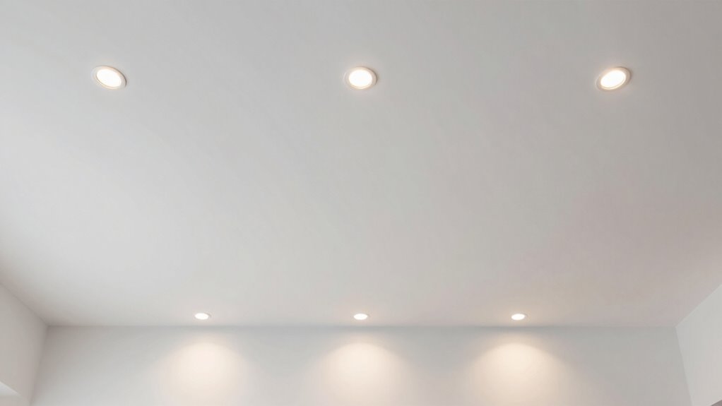 Proper spacing minimizes dark spots and over-lit areas, while dimming controls help fine-tune ambiance. Remember, consistent color temperature ties everything together, making your space feel cohesive and well-designed. Applying these techniques ensures your ceiling looks polished, inviting, and free of uneven lighting.