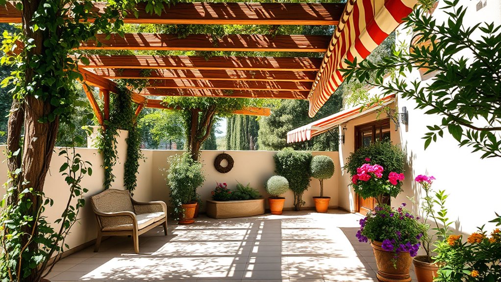 By combining pergolas, awnings, and lush plants, you craft a sanctuary where shade becomes a welcoming embrace rather than a mere shelter. Think of your outdoor space as a living mosaic, each element adding depth and personality. With a little planning and creativity, you’ll transform your yard into a cool oasis—a gust of fresh inspiration in the summer heat, where comfort and beauty grow side by side, like a well-tended garden of serenity.
