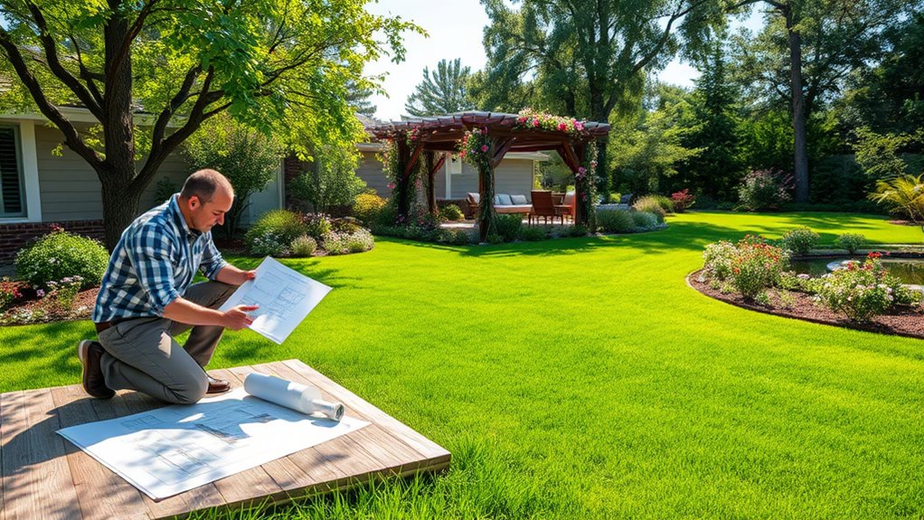 Budget planning plays a vital role in your decision. Before meeting potential designers, establish a clear budget that includes not just the initial installation but also ongoing maintenance, including plant care, fertilizing, pruning, and seasonal adjustments. A good landscape designer will help you allocate funds wisely, balancing your desires with what’s realistically achievable within your financial limits. They should be upfront about costs and provide detailed estimates, so you avoid surprises down the line. Remember, a well-planned budget isn’t just about saving money; it’s about making smart investment choices to get the most value from your outdoor space.