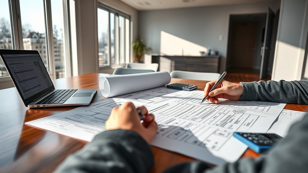 When you’re remodeling, a designer can help you navigate permits and regulations by understanding local building codes and zoning laws. They identify potential issues early, prepare necessary plans, and handle permit applications to keep your project legal and on track. Working with a professional reduces delays, prevents fines, and guarantees safety standards are met. Keep going to discover how partnering with an expert makes your remodel smoother and more compliant from start to finish.