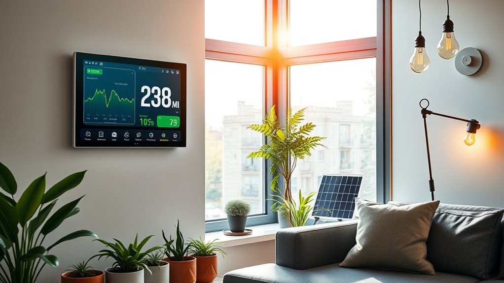 Automated climate control is another key feature that boosts your home’s sustainability. Instead of manually adjusting your thermostat, you can install smart thermostats that learn your schedule and preferences. They automatically lower the temperature when you’re away and raise it when you’re returning, ensuring comfort without wasting energy. These systems often include sensors that detect occupancy and ambient conditions, fine-tuning heating and cooling to match your daily routines. This not only conserves energy but also extends the lifespan of your HVAC system by reducing unnecessary strain.