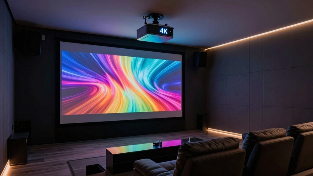 If you’re searching for the 15 best 4K home theater projectors for 2026, I’ve got you covered. I’ve compiled top options like the Epson 5050UB, Google TV smart projectors, and portable models with Dolby sound, great brightness, and gaming features. These projectors suit different needs, from outdoor setups to immersive home theaters. Keep exploring, and you’ll discover detailed insights on selecting the perfect projector for your space and entertainment style.