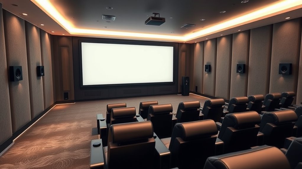 Ambient light considerably impacts a 4K projector’s image quality, making it harder to see details and dims the colors. When the room is bright, shadows fade, and contrast drops, reducing the cinematic experience. I recommend using a dedicated dark room or controlling lighting with curtains and dimmable lights to maximize image clarity and color richness, ensuring you get the most out of your home theater setup.