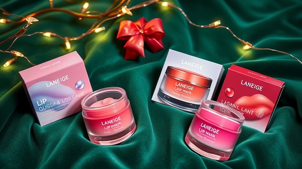 If you want to keep your lips soft and hydrated this holiday season, I recommend checking out the top Laneige lip mask sets. The TONYMOLY Jelly Lip Melt duo, KIMUSE’s 4-piece overnight kits, a 12-pack for long-lasting moisture, and a cute 6-pack of lip balms and masks are all great options. Each set offers nourishing formulas with natural ingredients perfect for winter. Stay tuned to discover which one suits your needs best!