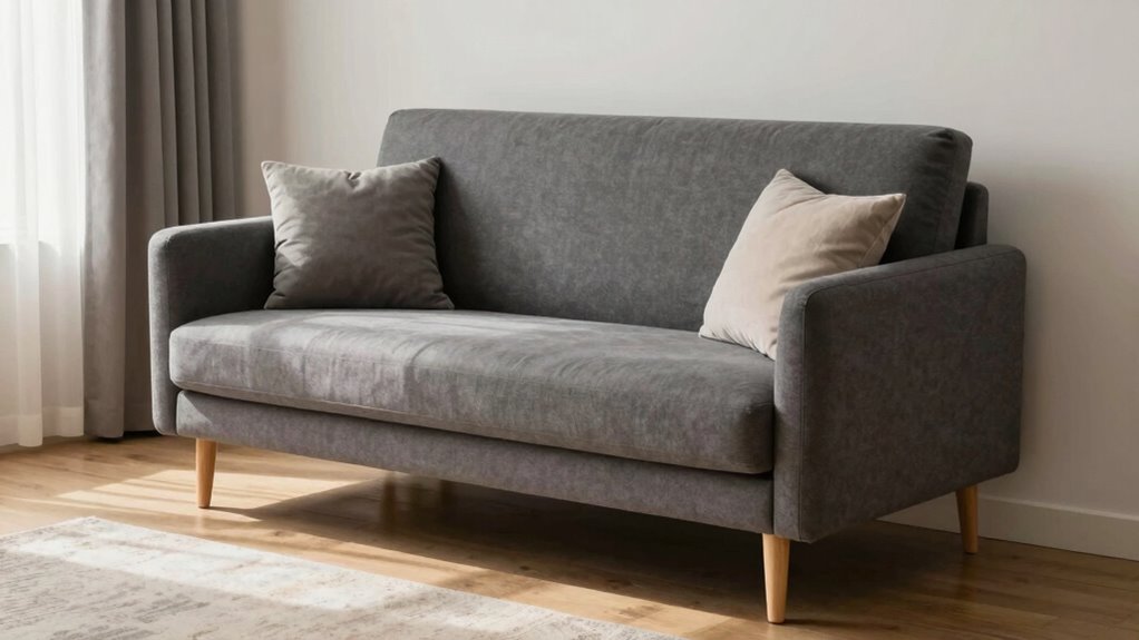 Material durability plays a crucial role in ensuring your loveseat sleeper stands up to daily use and lasts for years. High-density foam and sturdy fabrics like corduroy or velvet are excellent choices because they resist wear and tear, extending the lifespan of your furniture. The upholstery fabric, whether polyester, chenille, or microfiber, impacts resistance to stains, fading, and pilling, making maintenance easier over time. Reinforced stitching and a strong frame, often made from steel or alloy steel, contribute to the structural integrity of the piece. High-resilience and memory foam cushions maintain their shape and support through repeated use, preventing sagging. Additionally, fabrics that are easy to clean and resistant to scratches and water damage help keep your loveseat sleeper looking fresh and functional for years.