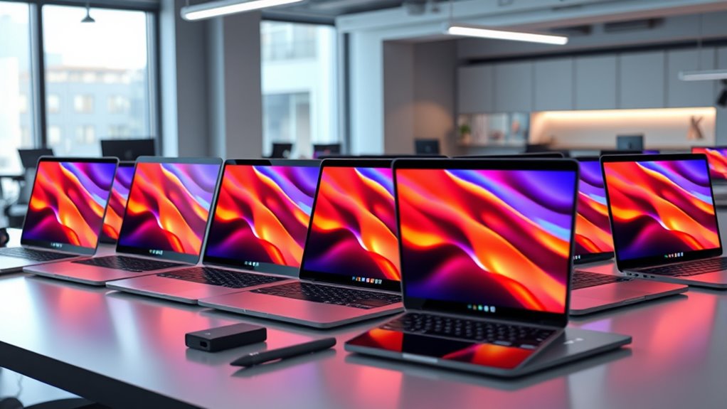 You might be surprised how well these MacBook Pros handle thermal management during intensive tasks. I’ve found that their advanced cooling systems keep temperatures in check, even during heavy data processing or AI workloads. The combination of efficient fans and optimized chassis design prevents overheating, allowing me to work longer without interruptions. So, whether I’m running complex models or multiple applications, these laptops stay cool and perform reliably.