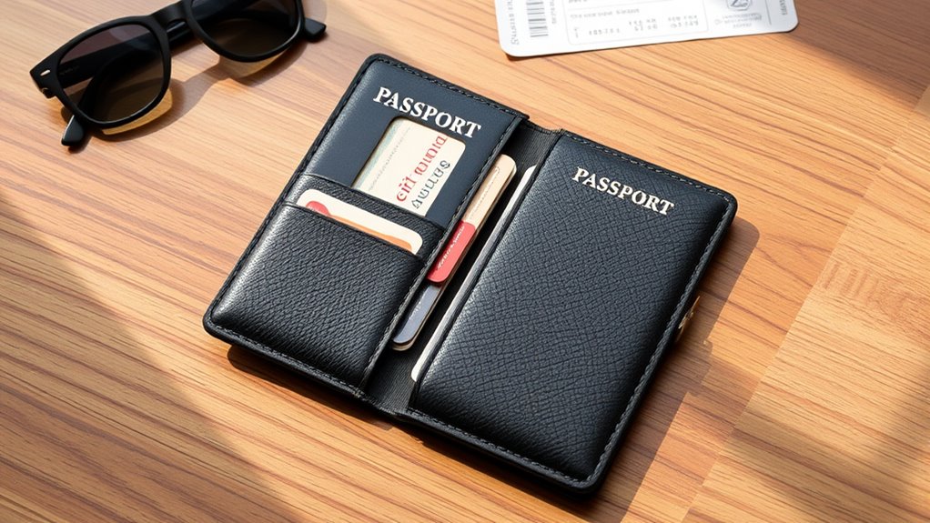 Ultimately, choosing the right passport holder wallet keeps our travel essentials secure and easily accessible. Imagine arriving at the airport, only to realize your RFID-blocking wallet protected your info from skimmers, just like it did for Sarah on her trip to Europe. With options like stylish leather designs or family-friendly wallets, we can find one that fits our needs and style. Stay smart, stay safe, and travel confidently with the perfect wallet by your side.