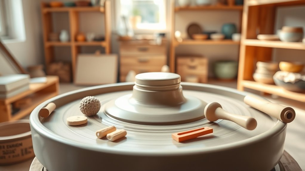 Think of choosing a pottery wheel like planting a seed—your patience and care will help it grow into a beautiful creation. With the right wheel, you’ll nurture your skills and watch your ceramic journey blossom. So, pick the one that feels like the perfect soil for your artistic roots. Remember, every masterpiece begins with a single turn, and with the right tool, your artistic garden will flourish beyond your wildest dreams.