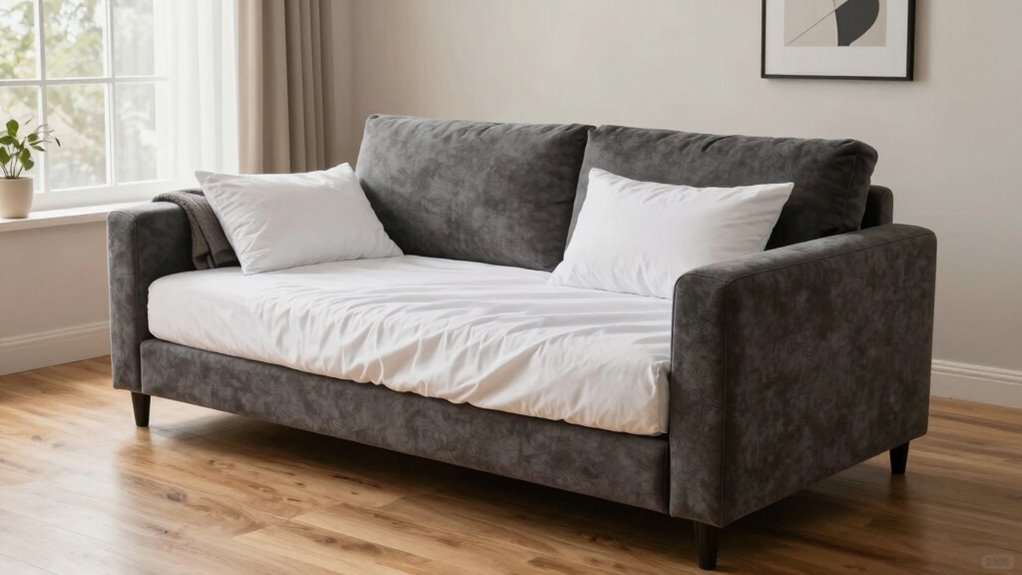 Think of a sleeper sofa as a garden that needs tending; regular care keeps it thriving. I recommend vacuuming the mattress monthly, flipping or rotating it to prevent sagging, and checking the frame for loose screws. Using a slipcover protects the fabric from stains, and spot cleaning spills immediately keeps it fresh. With consistent maintenance, your sofa stays comfortable and inviting, even after years of daily use.