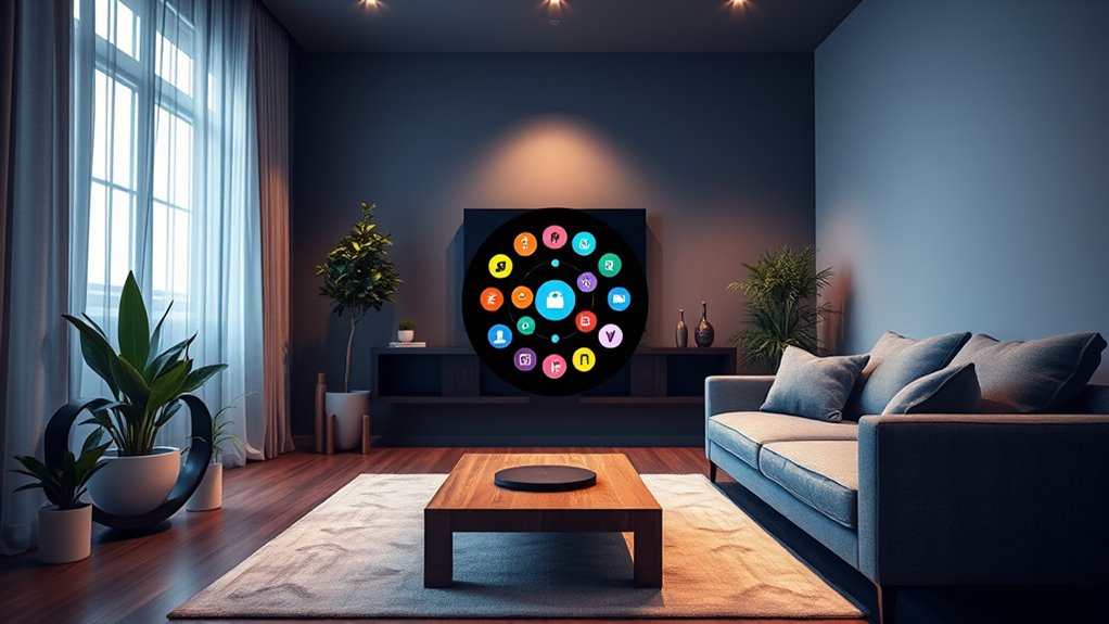 Smart hubs prioritize data privacy and security by using encryption to protect your information during transmission. They also offer secure login options, regular firmware updates, and strict access controls to prevent unauthorized use. I make sure to change default passwords and enable two-factor authentication whenever possible. These steps help me keep my smart home data safe, giving me peace of mind while enjoying seamless connectivity and automation.