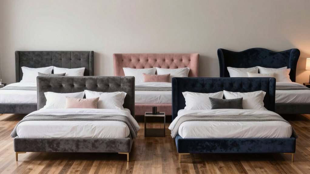- Ensure the frames offer sturdy support, compatible with 8-14 inch mattresses, and feature durable materials like velvet, linen, or PU leather.